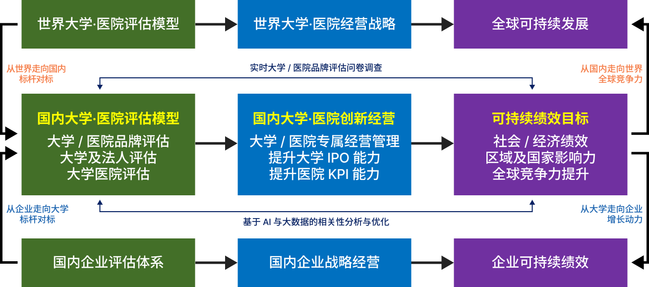 为跻身世界领先行列,国内大学(医院)需要在透明、公正的评估模型与反馈形成良性循环的过程中,有效提升品牌认知度与全球声誉。大学评价研究院(株)将把从大学评估到医院评估的全过程构建为民间主导的实时数字化平台,在韩国大学、法人及大学医院的战略品牌建设中发挥核心引领作用。