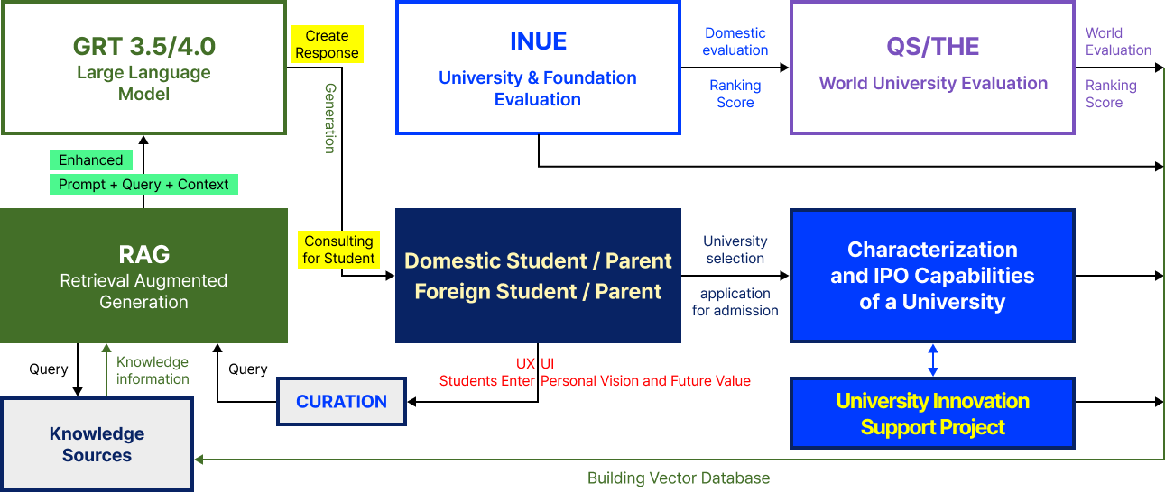 Modern advanced technology may be able to transform social and cultural patterns that have been difficult to change through political or economic approaches. In fact, AI technology is changing many long-standing customs in our society. Accordingly, the Inistitute of University Evaluation Inc. will develop the Generative AI University Selection Solution Anchor and service it domestically and internationally. This will allow students and parents to easily attempt real-time online efforts to select universities and majors suitable for their future value and vision, promoting a major transformation in the university admissions culture.