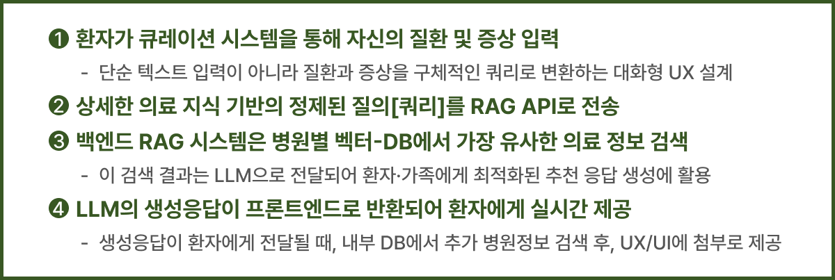 대학평가연구원(주)은 실시간 병원선택 AI 솔루션 헬퍼(Healper) 소프트웨어 플랫폼을 개발하여 당사의 대학병원 평가 모델 및 결과, Newsweek 세계병원평가 공개자료, 대학병원별 KPI(Key Performance Indicator) 역량 관련 빅데이터를 기반으로 Chat GPT LLM(Large Language Model) 및 RAG(Retrieval Augmented Generation) 시스템과 협업하는 생성형 AI 플랫폼을 운영한다. 이를 통해 국내외 환자와 가족들이 최적의 병원을 선별·선택하는 시도를 지속할 수 있게 함으로써, 국민과 환자 자신의 가치와 증상에 따른 최상의 우수·선호 병원을 선택할 수 있을 것이다.